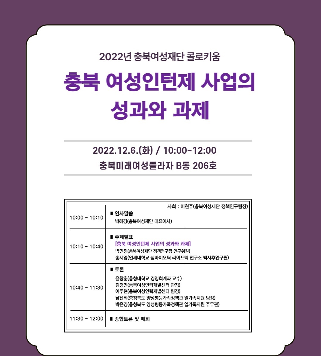 2022-10-25 ~ 2022-10-25교육완료2022 충북 청년 성평등 네트워크 지원사업 - 청년 축제 추진위원 모집